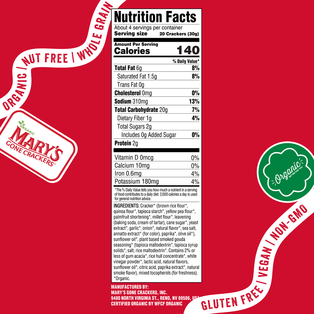 This plant-powered cracker brings the mellow, smoky richness of gouda—without any dairy in sight. With organic ingredients and a satisfying, toasty crunch, it’s the perfect sidekick for movie marathons, road trips, or snack boards that need a little extra flair. One bite and it becomes your new must-pack snack.